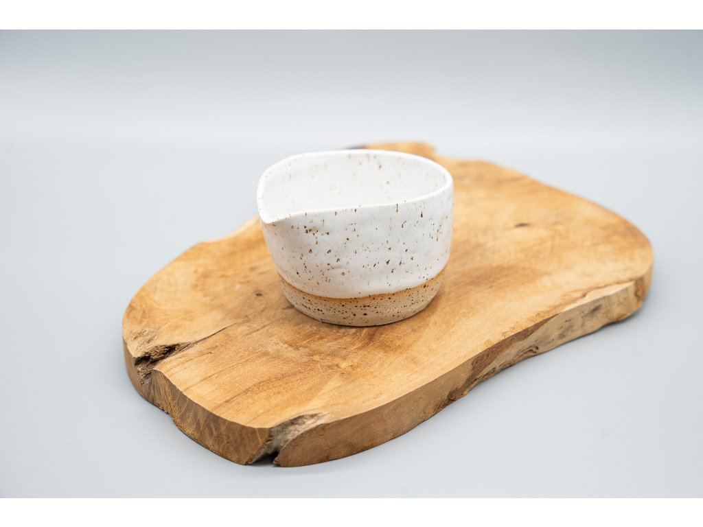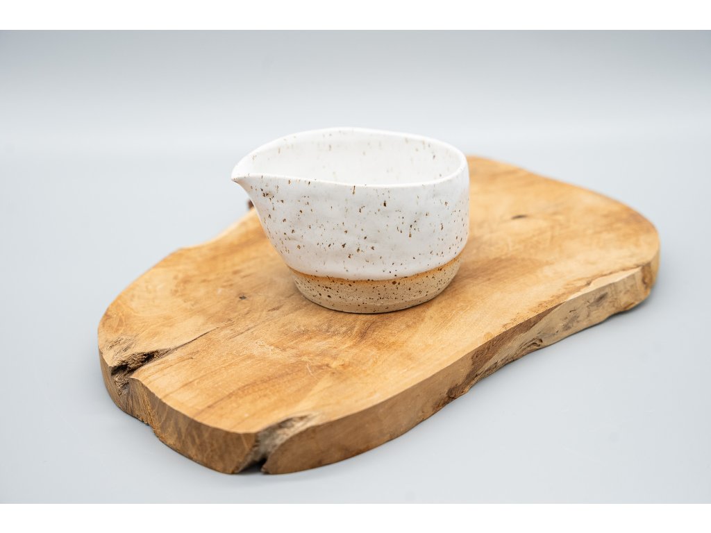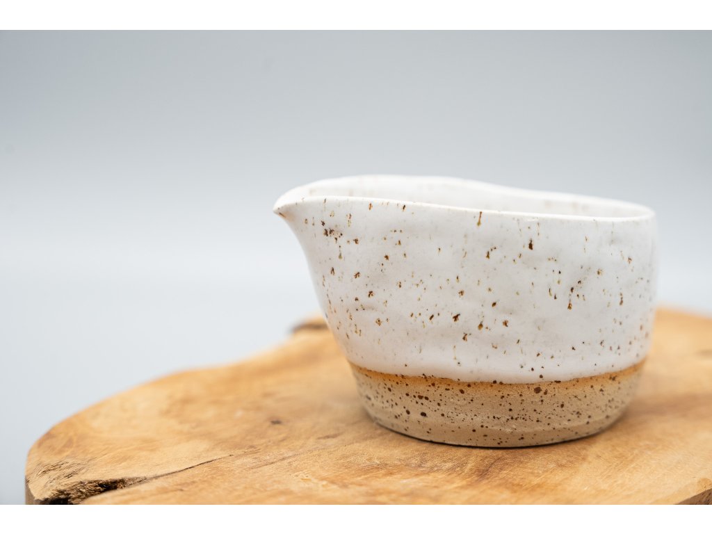 Jednoduchá keramická konvička na mléko, vyrobená z tečkované kameniny, glazovaná bílou lesklou glazurou. Mléčenka má objem 180 ml. Lze ji mýt v myčce, ale časem může dojít ke zmatnění glazury. Proto je bezpečnější mýt konvičku v ruce.